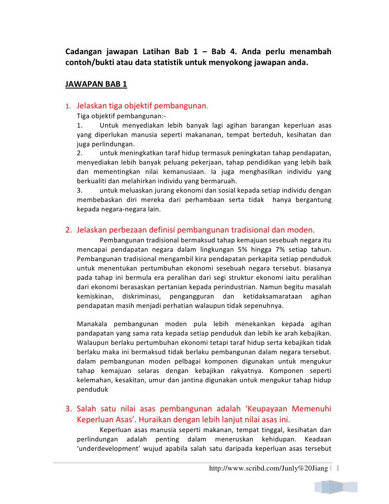 Contoh Jawapan Ekonomi Pembangunan Seed2013 Bab 1 Bab 4 Pdf